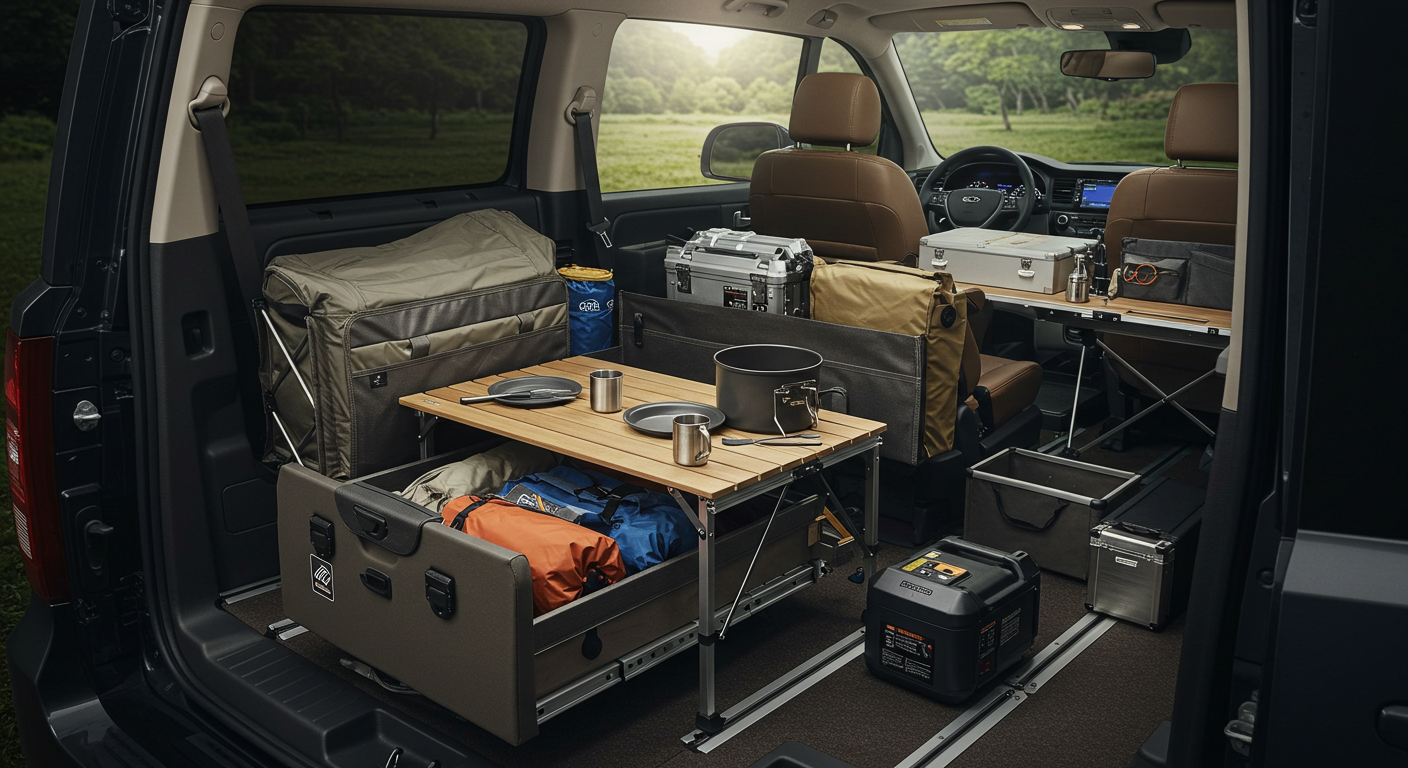 - 매트 선택: 자충매트나 8~10cm 두께의 고탄성 에어매트가 추천됩니다. 차량 폭이 좁기 때문에 1인용 매트가 적합하며, 양 사이드에는 소형 수납함을 배치하면 효율적입니다.